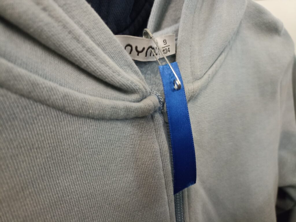 Alle Kleidungsstücke wurden mit einem blauen Band markiert. Das bedeutet: “Das Fundstück befindet sich mindestens seit Oktober 2025 hier.” Das hilft dabei, einen Überblick zu haben, welche Stücke “Ladenhüter” sind.